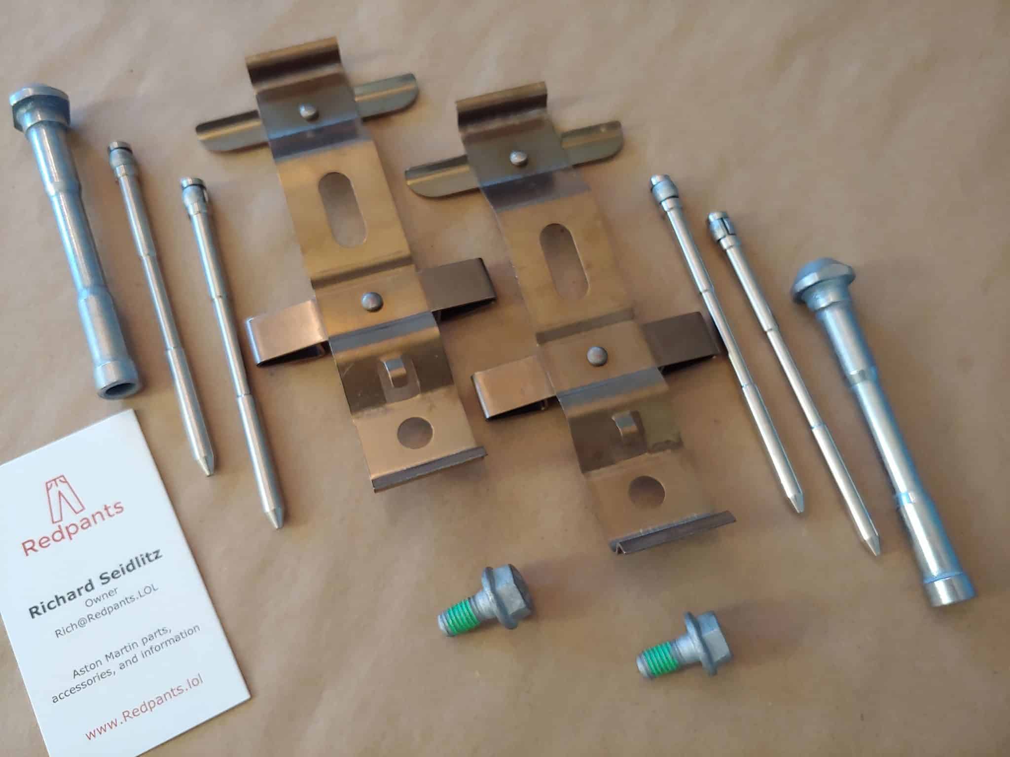 Want to use brand new pins and clips when changing your brake pads? These kits include everything needed! These are OEM items from Aston Martin, made for them by Brembo.